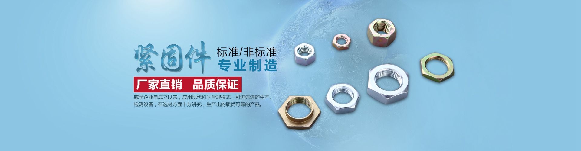 瑞安市威孚標準件有限公司企業創(chuàng)辦于1994年,是一家專業生產及加工標準件、高強度緊固件的廠家。主要的產品有防松螺母、鎖緊螺母、六角螺母、法蘭螺母、半圓鍵、尼龍防松螺母、自鎖螺母等。常見的其他附件有:螺絲、螺釘、墊圈、彈簧、墊片、連接件、彈墊、高強度螺栓。防松螺母的表面采用鍍鋅工藝,緊固功能強大,方便拆卸,固定好了就不會松動。我們的緊固件擁有高強度的連接方法,緊固的結構合理。標準件,采用新型的工藝及不銹鋼的材質,標準的規(guī)格,類型很多,非常實用。我們的防松螺母、鎖緊螺母等產品支持定制,適用于:裝修、機械等生活及工作上、產品不僅質量可靠,我們還提供了售前售后的服務,為您解決相關緊固件產品問題。